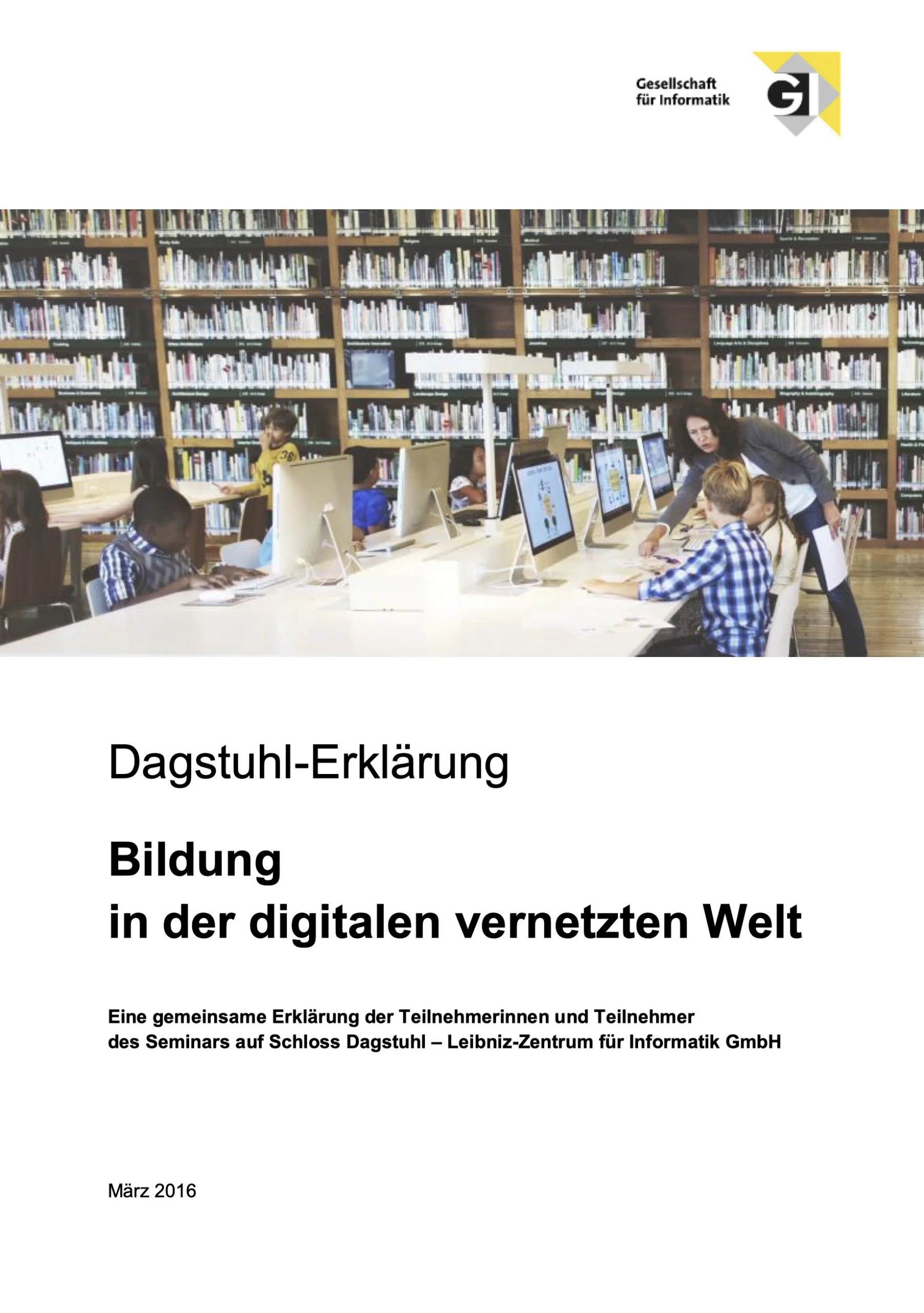 Die Gesellschaft für Informatik (GI) hat 2016 die sog. »Dagstuhl-Erklärung. Bildung in der digitalen vernetzten Welt« publiziert.